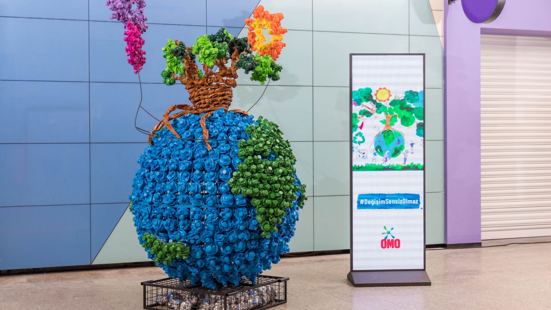 “İyilik için kirlenmek güzeldir” söylemiyle herkesi gezegenin iyiliği için kolları sıvamaya çağıran OMO, Okul Dışarıda Günü’nde çocukların çizdiği resimden ilhamla geri dönüşüm konusunda farkındalığı artırmak için ayrıştırılmış plastik atıkları kullanarak sıra dışı bir enstalasyona imza attı. “Çocukların geri dönüşüm yapılan temiz bir gezegen hayali resimlerde kalmasın” çağrısında bulunan markanın Ressam Şevval Konyalı iş birliğiyle hazırladığı çalışma, 24 Ocak’tan itibaren Kadıköy Metro İstasyonu, Taksim Metro İstasyonu ve Gayrettepe Metro İstasyonu’nda ve ardından bir ay süreyle İstanbul Oyuncak Müzesi’nde sergilenecek.